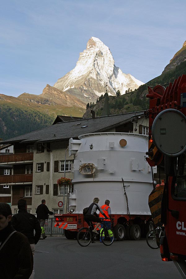 The first unit was lifted to the installation site in Zermatt by cables. The