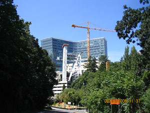 The Portland Aerial Tram is a 3,300 linear foot aerial tram rising 500 feet over Interstate 5, the Lair Hill neighborhood, and Terwilliger Parkway and connecting OHSU and the Marquam Hill to the South Waterfront District. Construction of the Tram will be completed in fall 2006 and will serve as a catalyst for the South Waterfront redevelopment and the continued emergence of OHSU as a top-tier medical research institution. Designed by Angélil/Graham/Pfenninger/Scholland Doppelmayr-CTEC, the tram will provide approximately a 3 minute ride between the two areas, with views of Mt. Hood and Downtown Portland.