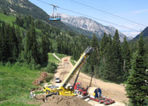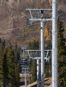 By fall of 2006, Snowbird’s original Peruvian lift will be taken out and replaced with a new high-speed quad. While the base will stay near the original base shack, the top station will be located below the steepest Chip’s Run pitch, an approximately 2,408-vertical-foot rise. This 8,000- linear-foot lift transports 1,800 people per hour, providing an eight-minute ride. Should wind conditions prevent Tram operation, this lift will allow for continued skier access to Peruvian Gulch and Mineral Basin. At the top of the lift, a 600-foot tunnel with a conveyor lift will provide access to Mineral Basin. This lift makes Snowbird’s intermediate terrain more accessible to skiers and snowboarders.