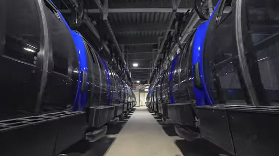Each gondola cabin is designed to carry up to ten passengers and their equipment in ultimate comfort. The completed lift system will transport 2850 people per hour with minimal wait times thanks to its innovative design and efficient loading system. |