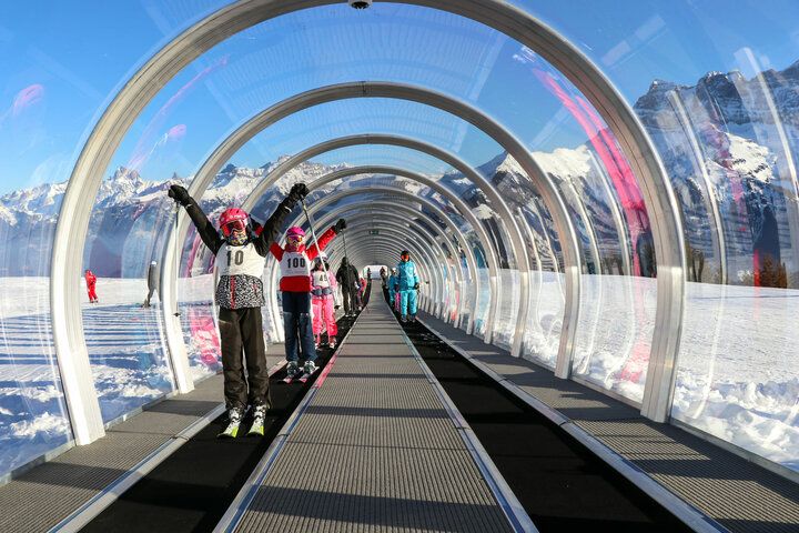 Sunkid: New double conveyor belt installation and adaptation of old systems by Borer Lift AGPlace: Morgins /Year: 2025 / Product: Moving Carpet With its twelve ski resorts in Switzerland and France, Portes du Soleil is not only the first cross-border ski resort in the world, but also one of the largest in the Alps with over 600 kilometers of slopes. For the 2024/2025 winter season, Borer Lift AG realized two Moving Carpet projects, comprising a total of three Sunkid conveyor belts. In Morgins, directly at the mountain station on the Foilleuse, an almost 95-metre-long covered duplex installation with two modern Moving Carpets was built. In the Champéry area, an existing installation with wooden side cladding was dismantled, extended and rebuilt in a new location. Axel Halder, Managing Director of Borer Lift AG, which is responsible for sales and service of Sunkid products in Switzerland, on the project in Morgins: "A Sunkid Moving Carpet had already been in operation here for several years. Our customer was very satisfied with the system and our service, so he approached us in March 2024 with the plan to replace it with two new conveyor belts. In May, we finally agreed on the installation of a duplex system - with two individually controllable type N Moving Carpets under a gallery roof." The installation with the help of Borer Supervision was carried out within a very short time by a team from the mountain cableways led by Florent Clerc (Technical Manager Infrastructure) - with final acceptance in November. Like the surrounding flat and wide slope profile, the new Sunkid conveyor belts in Morgins are primarily tailored to beginners and children. In addition to short distances and easy, comfortable transportation, the entire facility also boasts an impressive panorama of the surrounding peaks - above all the famous Dents du Midi massif. The exposed, sunny orientation ensures that the Moving Carpets can be used comfortably throughout the day. Guests on both conveyor belts are protected from the wind and weather along their entire length by a shared gallery roof. Electric roller shutters have been installed at the ends of the system. These not only provide excellent protection for all components, but also allow fences, signs, shovels etc. to be stored inside the gallery after the lift closes. This ensures a quick start to operations the next morning. The latest generation "Type N" Moving Carpets are controlled via the innovative i-Control system. The system is operated via external control terminals - housed in the control room of the "TC Morgins" gondola lift - including full video and audio monitoring as well as remote access for the customer and the Borer service team. The customer achieves full flexibility and efficiency by being able to operate both conveyor belts independently of each other. At peak times, both can run in parallel, while in quieter phases only one Moving Carpet is activated. This concept not only enables optimum capacity utilization, but also ensures maximum operational reliability: even in the event of a technical malfunction, at least one conveyor belt remains available. "The second project completed in Portes du Soleil in 2024 (in the Champéry area) was anything but a standard installation with dismantling, repositioning and extension," says Axel Halder. "It shows the variety and flexible adaptability of the Sunkid Moving Carpets and galleries, including Borer's technical know-how. The extended gallery with coverable entrances and exits enables side entry and exit to the conveyor system. The automatic start/stop when not in use increases energy efficiency. The half-height timber cladding on the sides offers solid protection and gives the gallery a rustic, alpine and sustainable look." Duplex Moving Carpet Morgins Use-case: Beginner terrain Length: 94.5 m Beltwidth: 600 mm Surface: Rufftop Propulsion: 15 kW max. speed: 0.7 m/s Gallery: Yes