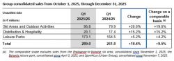 Compagnie des Alpes: 1st quarter 2025-2026 SalesCompagnie des Alpes reported its consolidated sales for the first quarter of financial year 2025/26. Sales amounted to €289.0 million, up 10.4% compared with the first quarter of financial year 2024/25. On a comparable basis, excluding the contributions from the Pralognan-la-Vanoise ski area, the Belantis leisure park, and the Sport4Lux sports center, sales grew by 9.5%.