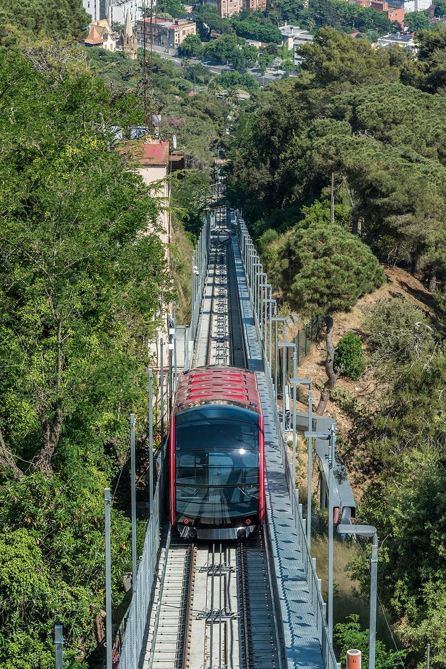 Leitner: New life for Barcelona’s classic ropewayLeitner revitalizes the funicular del Tibidabo A pioneering event took place in the Catalan capital 120 years ago, when the Tibidabo Funicular opened at Barcelona’ local mountain in 1901, thereby establishing a modern transport link to the popular summit overlook of Tibidabo, where an amusement park is also located. As part of a comprehensive revitalization of the excursion destination, which is particularly popular with tourists, the historic funicular was modernized by LEITNER from 2019. Now the funicular was ceremoniously opened. COMPREHENSIVE REVITALIZATION PROGRAM Originally, wooden cabins were employed to make the journey to the top of the Tibidabo at 512 m. Over the past decades, several upgrades were carried out, the latest of which took place in 2008. Now, as part of a comprehensive revitalization program, a completely new chapter has been opened. This already started with the name, which has been chosen in 2019: Thus, the funicular will be integrated into the existing amusement park as "Cuca de Llum" (Firefly) as a modern attraction. LEITNER was responsible for the modernization of the funicular control system, the delivery of two carriages, and the installation of the sheaves, tracks, station equipment, and automatic platform doors. The introduction of a new safety system ensures compliance with current regulations governing ropeway and funicular transport. Additional safety features include the use of fireproof elements, improved door opening and closing systems, and the installation of video surveillance and emergency lighting. The funicular’s traveling speed increased from four to ten meters per second and its transport capacity increased from 120 to 252 people per journey. PANORAMIC VIEWS, INTERACTIVE INFORMATION, AND FUTURISTIC LIGHTING Along with the installation of numerous new technical systems and equipment, the project was focusing on design aspects that create more space in the carriages and offer more comfort and a better panoramic view. In addition to a noticeable reduction in noise and vibration, air conditioning systems, barrier-free access and ergonomically designed seats contribute to a relaxed funicular journey. The seats are semi-transparent, and thus have the effect of making the cabin space appear even larger. The funicular makes an impression at night, especially after the installation of a distinctive futuristic exterior lighting system. The interior is also particularly innovative, as the cabins are outfitted with tablet computers that offer passengers entertainment and information about the recreational park’s history and the development of the funicular ropeway. LEITNER implemented the project via its Iberian subsidiary "Telèfericos y Nieve” and in cooperation with the Barcelona-based architectural firm "MIAS Architects". The opening of the ropeway took place on June 12, 2021.