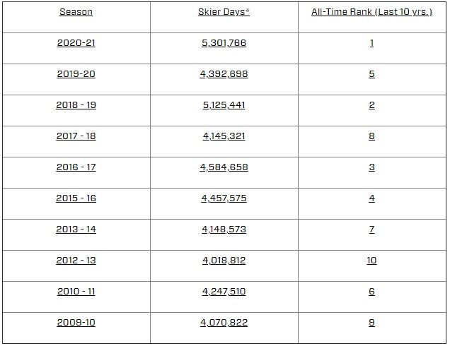 NSAA releases skier visit numbers & other metrics for 2020-21 season