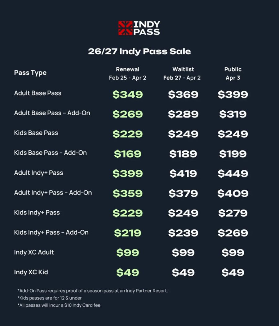Indy announces ten additional new resorts, with five in the Midwest.Indy Pass expects a remarkably short public sale period following record-breaking sales from returning passholders and the waitlist. JACKSON, NEW HAMPSHIRE - Indy Pass has announced that 26/27 passes will go on sale to the public for a single day on Friday, April 3, and only for as long as supplies last. Over the next 72 hours, people who signed up on the waitlist will have their final opportunity to purchase before all remaining inventory is released to the public at noon Eastern on Friday, April 3rd. The no-bank, no-interest payment plan will remain available for all purchases. Each season, Indy Pass caps the number of passes it sells to help preserve the independent, less-crowded nature of its member resorts. “Last season’s pass was publicly on sale for around 30 days in total. This spring, we are down to a single day,” said Indy Pass Director Erik Mogensen. “There’s a rising demand for affordable, independent, and authentic ski experiences. We’ll continue to grow our passholder numbers carefully, with purpose before profit.” Indy Pass is announcing the addition of ten new ski areas for the 26/27 season, including Whitecap Mountain Resort, WI; Paul Bunyan Ski Area, WI; Camp 10 Ski Area, WI; Coffee Mill Ski Area, MN; Domaine Skiable des Contamines, France; Pizol, Switzerland; Onikoube Ski Resort, Japan; Spirit Mounain (XC), MN; Carters XC Ski Center, ME; Fort Kent Outdoor Center (XC), ME; and passholder discounts to North Cascade Heli in Washington State. This comes after Indy Pass announced sixteen new ski areas for the 26/27 season in late February, including Les 7 Laux, France; Bergbahnen Hohsaas AG, Switzerland; Valmorel, France; Stöten i Sälen, Sweden; Levi, Finland; Murray Ski Ridge, BC; Pebble Creek Ski Area, ID; Thrill Hills, ND; Stranda Ski Resort, Norway; Bethel Village Trails, ME; Franconia Inn & Outdoor Center, NH; Great Glen Trails Outdoor Center, NH; Northern Maine Community Trails, ME; Steamboat Ski Touring Center, CO; Haymaker Nordic Center, CO; and The Loppet XC, MN. “We’re serious about doubling down on access,” said Mogensen. “This second wave of additions for the 26/27 pass brings the total new options on the pass for the 26/27 season to 26. We will continue towards our 300+ goal with additional ski areas to be announced in the fall. Passholder Renewal System Indy Pass recently implemented a new renewal system allowing returning passholders to auto-renew each year for a guaranteed pass at the lowest price. Those who don’t enroll will forfeit their renewal spot and pricing for the following year to members on the waitlist. Recently signed-up members of the waitlist will be granted purchase access by email. 300 Resort Guarantee Passholders may request a refund before December 1, 2026, if the number of Indy Pass resort partners is less than 300 by November 1, 2026. A passholder can also request a refund for an unused pass by December 1, 2026, if their favorite resort from the 25/26 season does not renew for 26/27. Payment Plan The Payment Plan will be available for all pass purchases, making it more affordable for all. Indy's Payment Plan continues to be offered at zero interest and with zero 3rd party banks (unlike the big guys) and offered in three payments, with the first due at the time of purchase. Year-Round Skiing Indy's expansion into South America, Scandinavia, and Europe allows year-round ski opportunities for passholders, when conditions permit. The 26/27 Indy Pass provides ski access starting in June when Corralco, Chile intends to open for the season, followed by September with skiing in Austria at Pitztaler Gletscherbahn and Kaunertaler Gletscher.