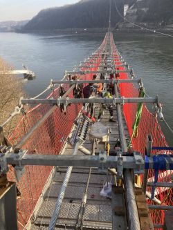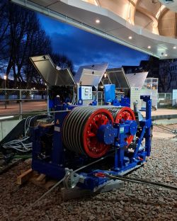 Garaventa: The importance of ropes in ropeway operationsAt the beginning of January, Garaventa commenced a comprehensive service contract for the Koblenz ropeway. The work included the scheduled relocation of the suspension ropes on both tracks and the first-ever replacement of the haul rope. A newly developed rope winch was used for this purpose. The Koblenz cable car is the Doppelmayr Group’s first 3S cable car in Germany and was built as an attraction and environmentally friendly transport link for the 2011 Federal Garden Show. Since June 2010, it has connected the Rhine gardens near St. Kastor’s Basilica with the plateau in front of Ehrenbreitstein Fortress. The system has 16 cabins and can transport up to 3,800 people per hour in each direction. The original plan was to dismantle the ropeway at the end of 2013. However, due to its popularity, it remained in place. The operating licence was extended in stages and is currently valid until 2030. Those responsible expect a further extension. The ropes are subject to particularly high demands to ensure that this ropeway operates reliably day after day. While the 54-millimetre-diameter suspension ropes carry the weight of the cabins and ensure the necessary stability, the 42-millimetre-thick haul rope moves the cabins at a steady pace around the route. The ropes are in use for around 2,700 operating hours per year. Such heavy use requires regular maintenance work. Safety is paramount The suspension ropes were moved according to plan without having to dismantle any intermediate suspensions. Carriageway 1 was moved 16.5 metres downhill and carriageway 2 was moved 19 metres downhill. The different displacement lengths were due to the fact that the station saddles of the two carriageways are not the same length. Each track was only moved as far as was technically necessary. During the entire moving process, the suspension ropes also had to be tested using magnetic induction. This ensured that any damage or changes inside the ropes were detected at an early stage. After the move, the intermediate suspensions were moved uphill by the corresponding length. This procedure redistributed wear and tear and relieved particularly heavily stressed areas of the rope. The suspension ropes were firmly tensioned at both stations and guided over bollards. The procedure had already proven itself and had been successfully used in Koblenz in 2015 and 2020. At the same time, the traction rope was replaced for the first time since commissioning. The 6-strand traction rope used previously had transported millions of passengers safely across the Rhine during its 16 years of service. Now, a new 8-strand traction rope has been installed, which offers smoother running and a longer service life thanks to its design. Although the safety of the previous traction rope would have continued to be guaranteed, this step was easy to implement because heavy equipment and tools were already being used for the suspension rope work. Unlike the first cable replacement in 2010, which was carried out using helicopters and ships, the old and new traction ropes were connected directly to each other today and pulled tight in a controlled manner. This was followed by splicing, i.e. intertwining the wire strands at both ends to create an endless connection. The customer had also commissioned additional maintenance work. This included new rubber inserts on the deflection pulleys in the mountain and valley stations. However, a special insert was required for the drive pulley in the mountain station, as this pulley transmits the adhesive force between the rope and the pulley. A rubber insert was unsuitable for this purpose, as it did not achieve the required coefficient of friction. Newly developed winch for confined spaces Garaventa used a newly developed ZECK winch for the rope work in Koblenz. The winch, developed by Garaventa and manufacturer ZECK GmbH, is designed for work in confined and difficult-to-access areas. The winch is significantly lighter than previous models and can be dismantled into individual modules. This makes it easier to transport and ship, even for use on other continents. The winch is designed to pull and brake ropes without twisting. Tractive and braking forces of up to 15 tons are possible. The winch was used for the second time in Koblenz. It had previously been used for the cable pull of the second Birg–Schilthorn line of the Schilthornbahn 20XX project, where it proved its strengths and was then further optimized for use in Koblenz. The cable car runs over a busy road, a railway line, and crosses the Rhine, over which ship and freight traffic runs continuously and cannot be interrupted. During the work, the ropes therefore had to be kept at a safe height at all times so that neither road and rail traffic nor shipping traffic was affected. All work steps were planned and carried out in such a way that these transport routes remained open. The work proceeded according to plan, so that the Koblenz cable car will be able to resume operation on March 14, 2026.