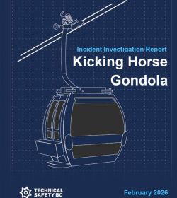 Kicking Horse Gondola Incident: Investigation reportOn March 10, 2025, a gondola cabin at Kicking Horse Mountain Resort fell approximately six feet from the lift line as it was leaving the loading station after its hanger arm broke. Eight passengers inside the impacted cabin were successfully evacuated, along with all other passengers on the gondola. Only minor injuries were reported. The investigation found that the primary cause of the incident was an unidentified crack that progressed within a brittle area of the hanger arm after experiencing significant abrupt forces, such as striking the station structure during operation. |