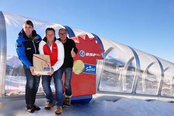 And now – 20 years later – Sunkid, as a world market leader in the passenger conveyor belt sector, can announce the production of its 3000th system which has been installed in the ski instruction area of the ESF 1800 Ski School in Les Arcs. The system which was specially designed to fit the occasion had been delivered turnkey ready during a small ceremony at the beginning of the 2015/16 season to ski school director Guillaume Villibord.